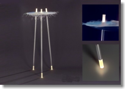 Verwendung eines Ultraschall-Wasserzerstäubers und des Halogenlichtes wird eine faszinierende Wirkung erzielt. Gleichzeitig wirkt die Leuchte im Betrieb als Luftbefeuchter. [inspiration] gibt es auch in der